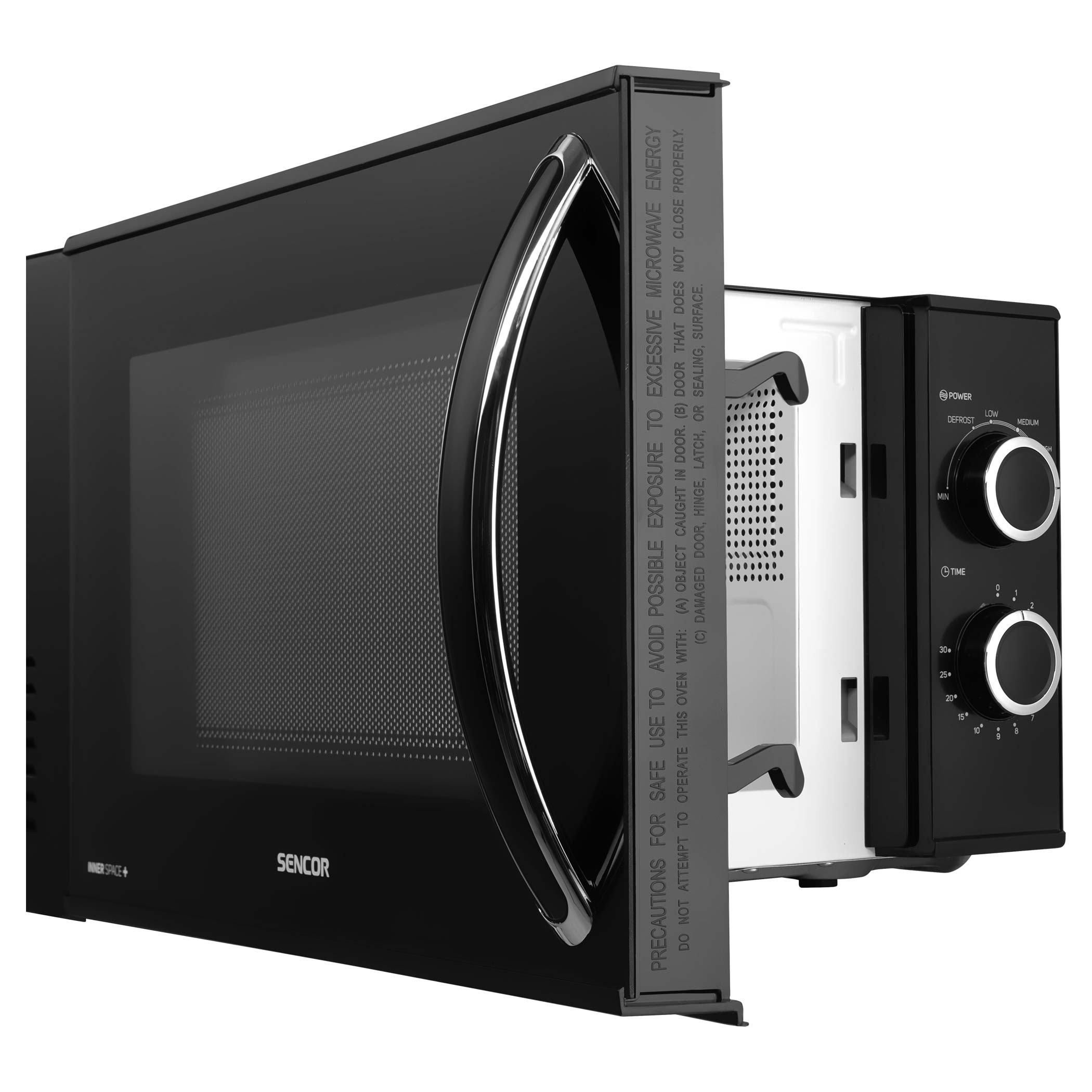 Az ajtóra rögzített nyitó kar segítségével, egyszerűen kinyitható a Sencor mikrohullámú sütő ajtaja. Az oldalra nyíló ajtó kialakításnak köszönhetően hatékonyabb tudja használni szinte minden helyzetben hatékonyan tudja használni.