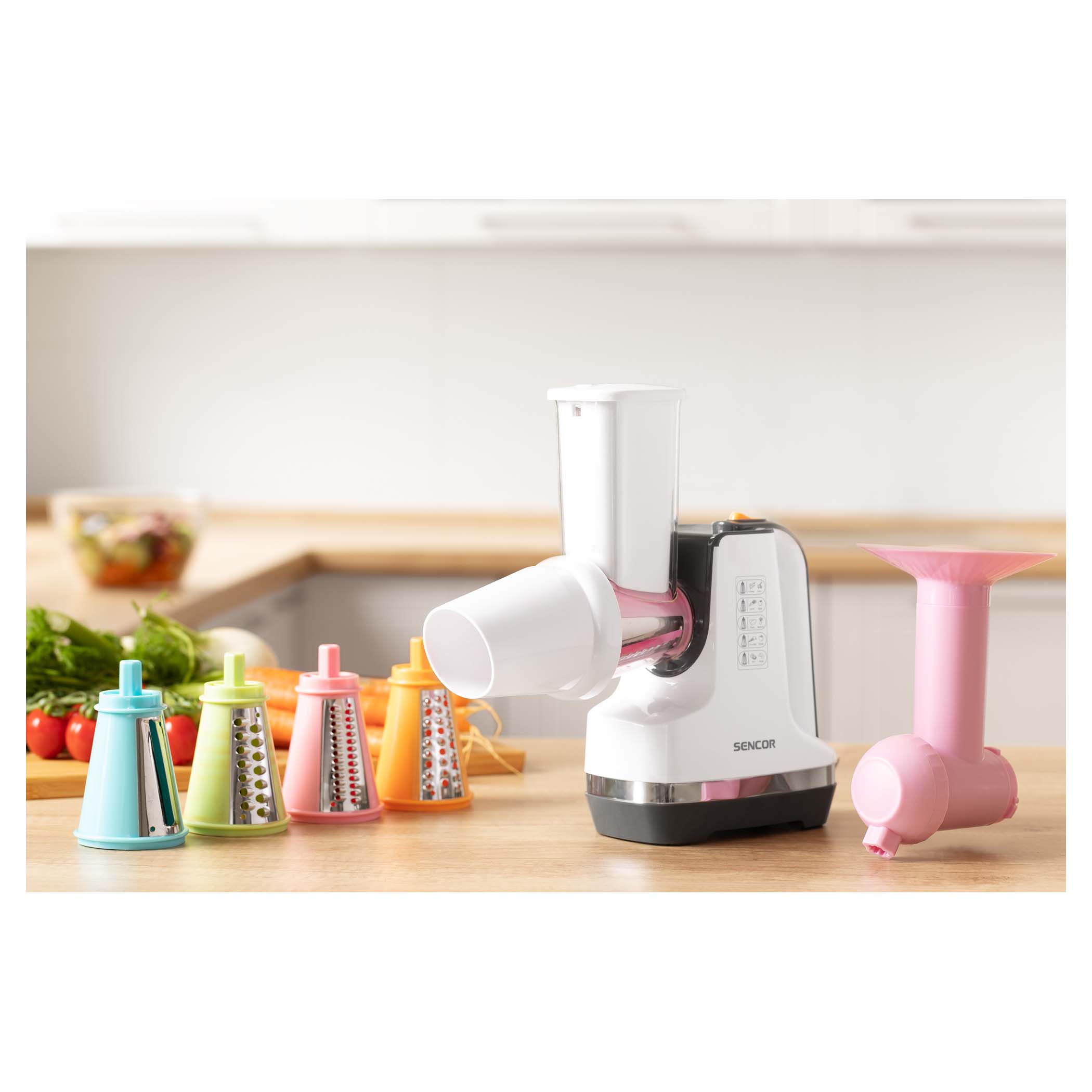 A Sencor SSG 4500WH segítségével könnyen és egyszerűen apríthat, szeletelhet, reszelhet vagy fagylalt alapot készíthet, amit csak a fagyasztóba kell betennie. Pillanatok alatt készíthető elő a különböző zöldségeket a salátákhoz, az 5 cserélhető betéteknek köszönhetően különböző alakzatú ételeket készíthet vagy felhasználhatja dekoráció céljából. Talpai csúszásmentesek így könnyedén és biztonságosan kezelhető.