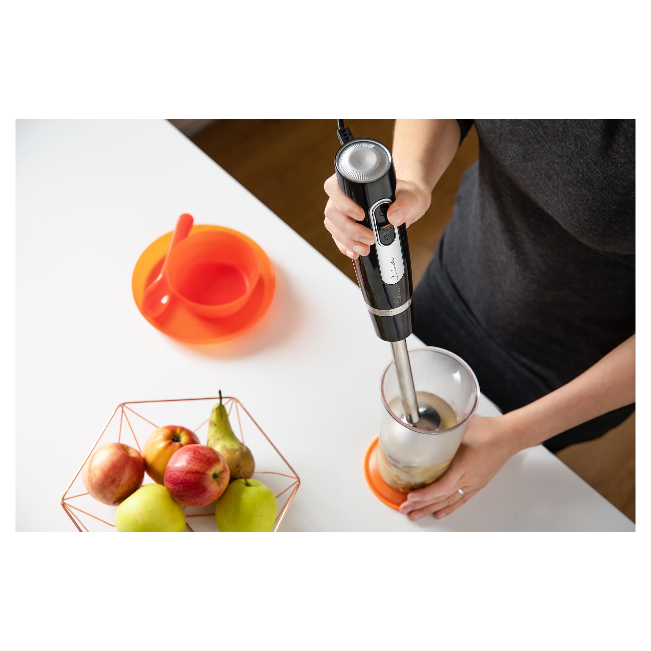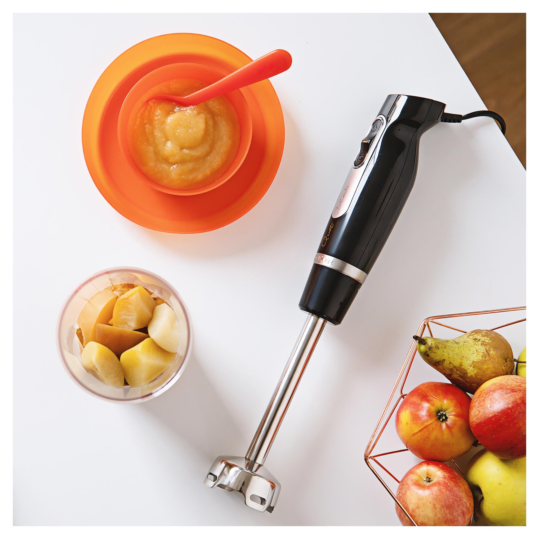 A rúdmixer rozsdamentes acélból készült, és a legnagyobb előnye a négy élű kiváló minőségű rozsdamentes acélkés. A kialakításának köszönhetően forró és hideg ételek pürésítésére is kiválóan alkalmas.