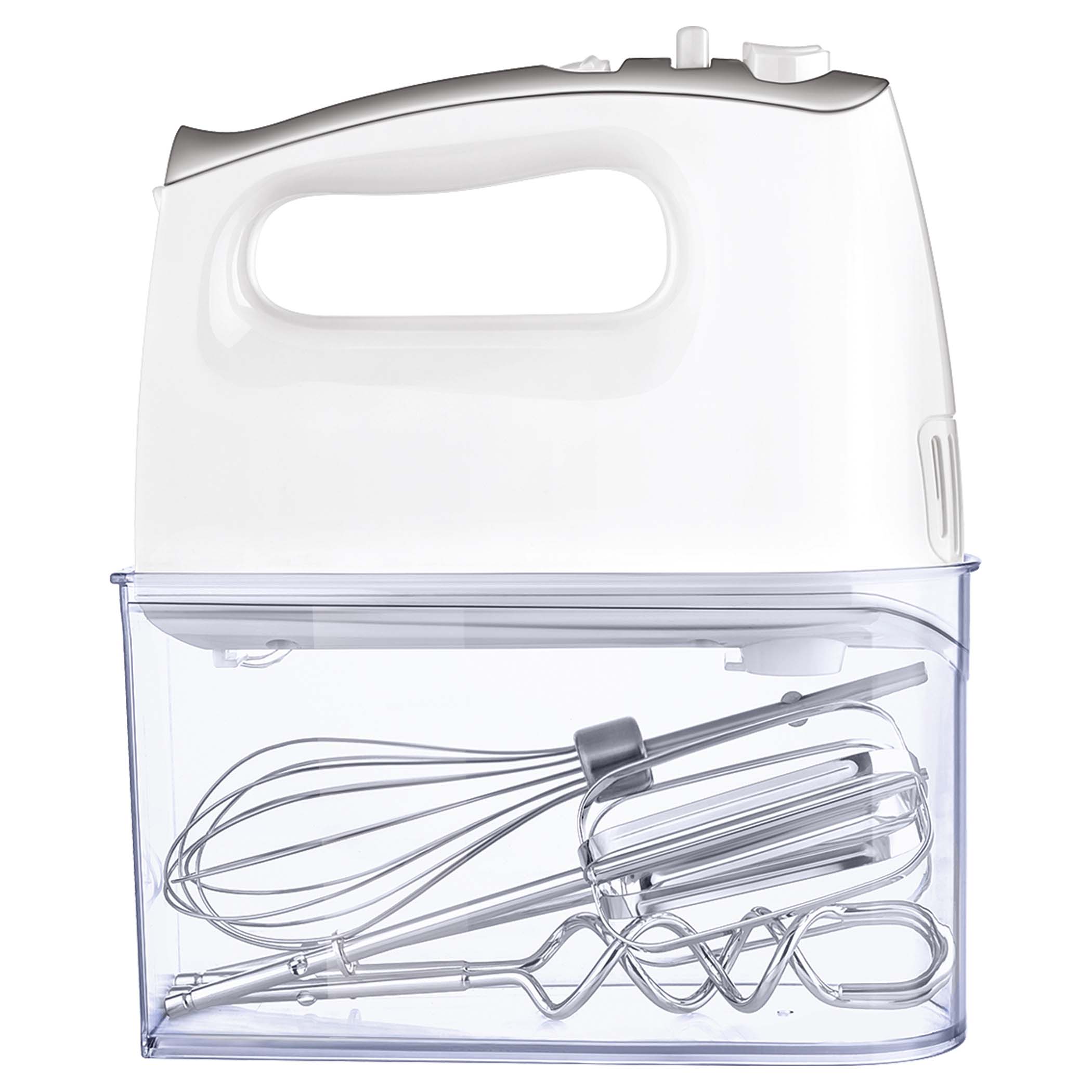 A Sencor SHM 5206WH-EUE3 kézi mixer 5 fokozattal és turbó gombbal lett ellátva. Könnyen, egyszerűen dolgozhatja össze a hozzávaló alapanyagokat. Használat közben csendes, de mégis maximális teljesítményt nyújt. Finomabbnál finomabb, könnyű tésztájú süteményeket készíthet a fém habverő szárak segítségével, és a fém dagasztó karokkal ezzel ellentétben ellenállhatatlan kenyereket és hagyományos tésztaféléket keverhet. A csomagolás tartalmaz egy praktikus dobozt a tartozékok tárolásához.