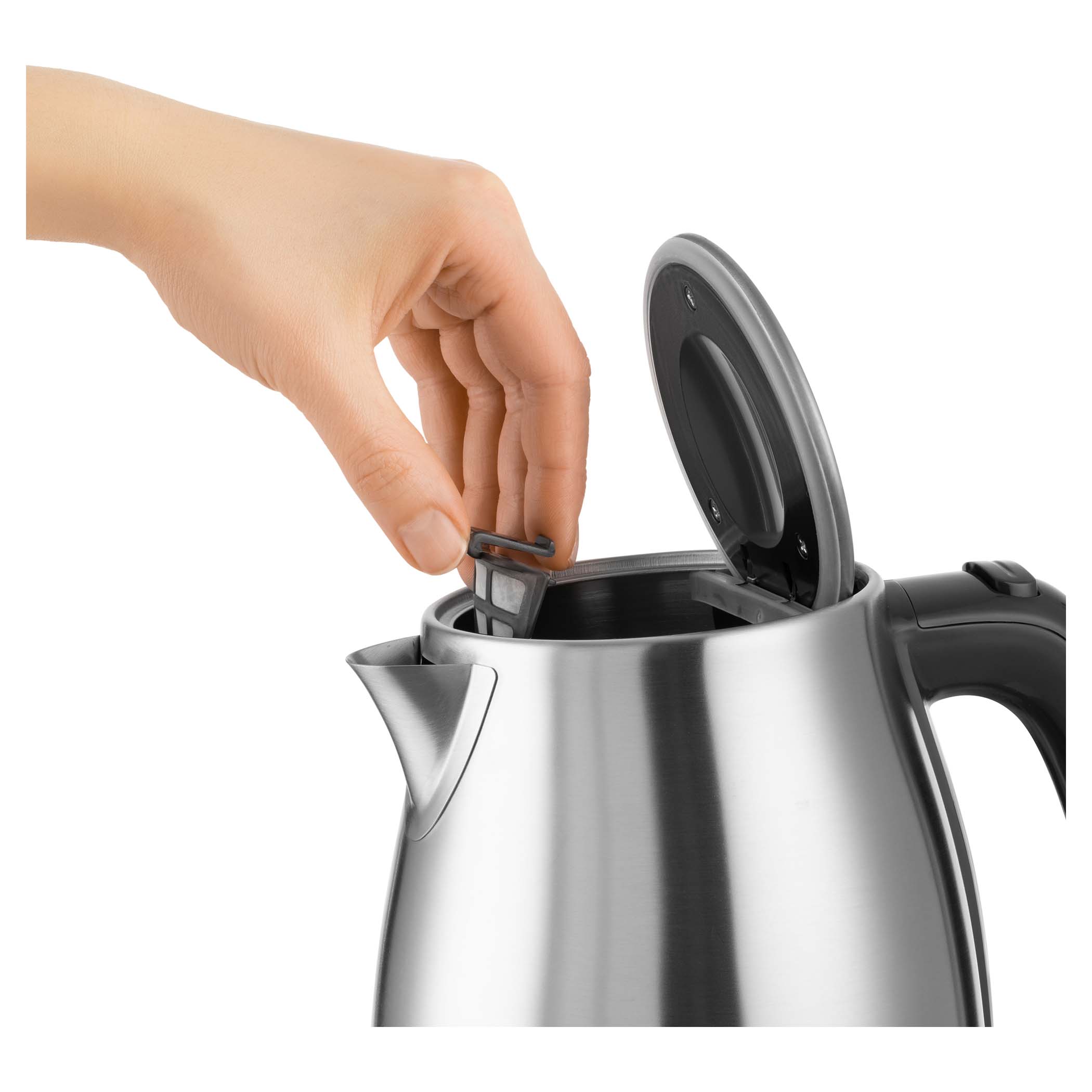 A vízforraló rozsdamentes SUS 304 acélból készült. A kiváló minőségnek köszönhetően minimálisra csökkenti a kalcium lerakódások képződését az egyszerű karbantartás érdekében. Az speciális fűtőspirál a rozsdamentes acél aljzat alá került beépítésre, biztosítva tartós és egyenletes működést. További előnye a speciálisan kialakított szűrővel felszerelt kiöntő kialakítás. A kialakítás megakadályozza, hogy víz csöpögjön a vízforralón kívülre, a szűrő visszatartja a szennyeződéseket vagy az esetleges vízkövet, amikor vizet önt a csészébe.