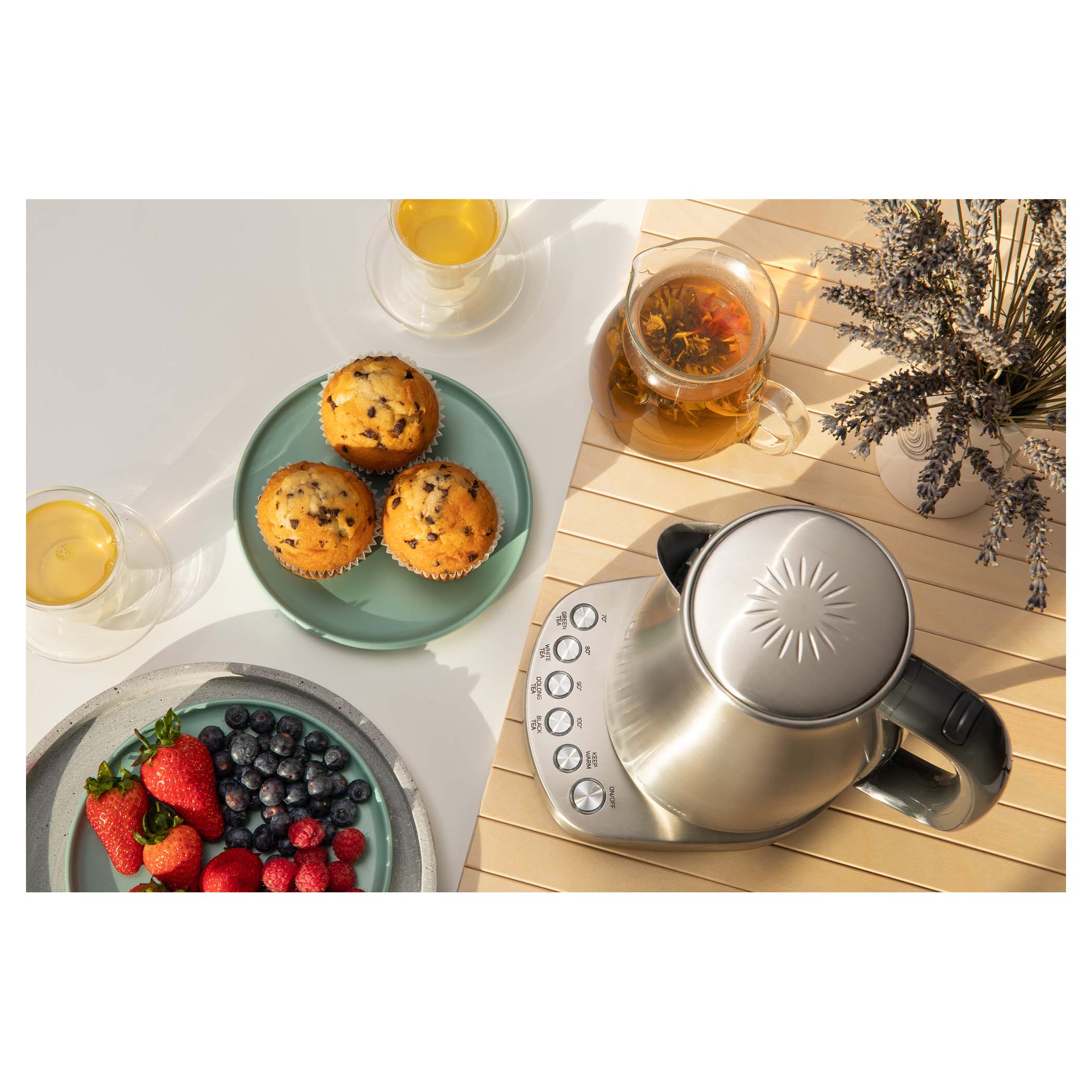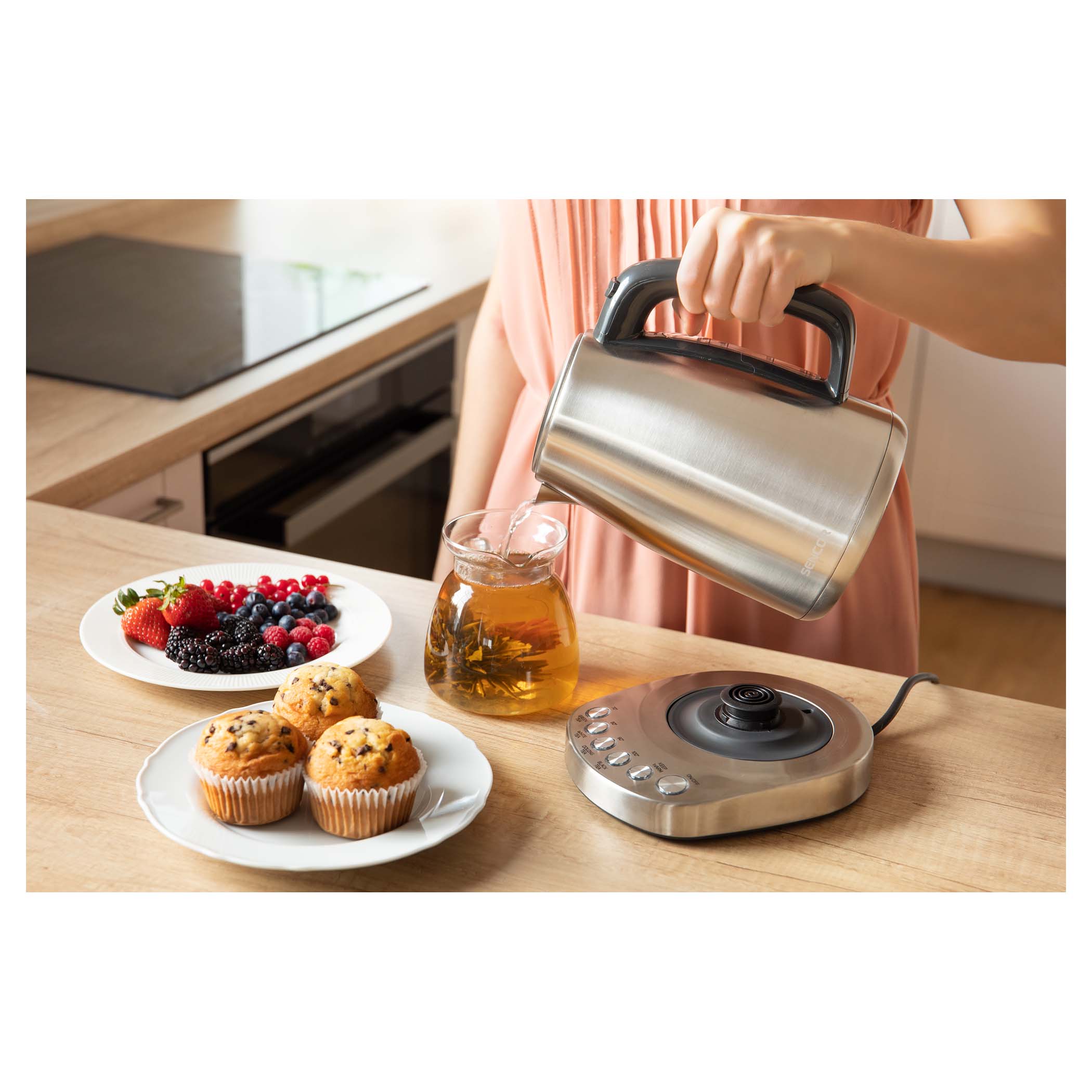 Tudjuk, hogy a víz hőmérséklete nagyon fontos hatással van az ital minőségére és az ízére. Ezért három üzemmód áll a rendelkezésre. Az első módban a következő hőmérsékletre tudja melegíteni a vizet 100, 90, 80 és 70 °C-ra, a második módban a vízforraló felmelegíti a vizet 100 °C-ra, majd a kiválasztott hőmérséklet szintre hűti le és a harmadik a víz felforralása 100°C-ra. fogantyúba épített nyomógombok segítségével vezérelhető. Nagyon egyszerűen, a talpba épített nyomógombok segítségével minden beállítható, így tökéletes ízben és hatóanyagokban élvezheti a kávét, gyógynövény- és gyümölcsteákat.