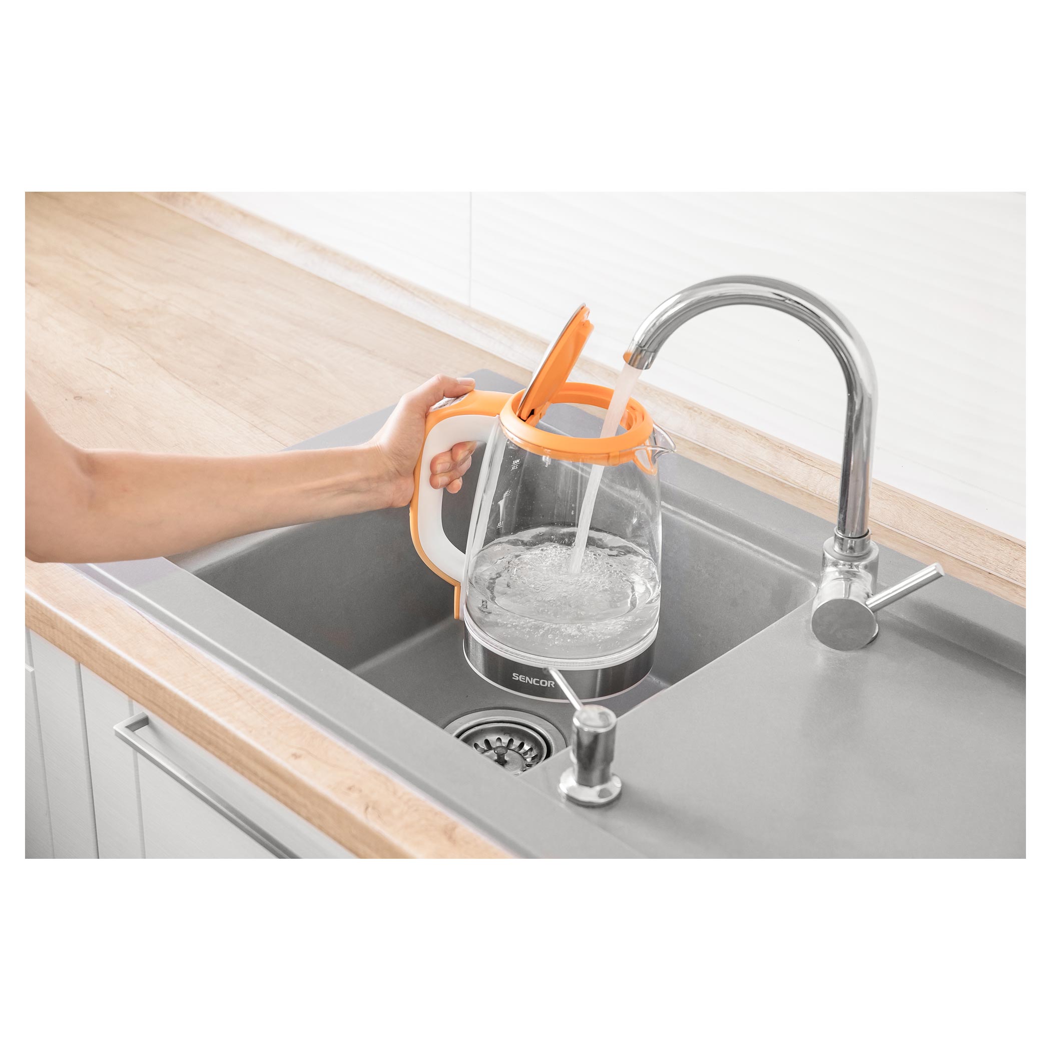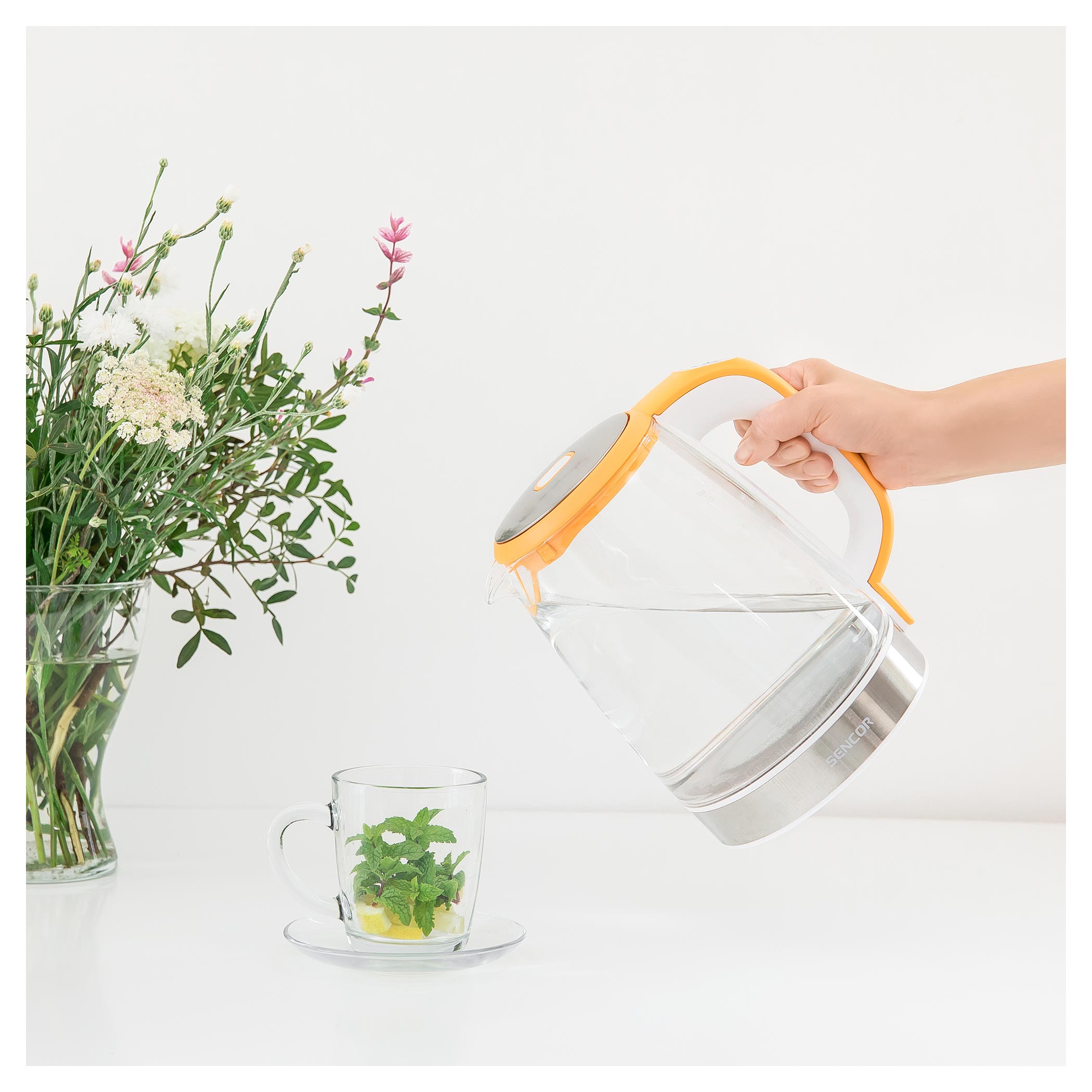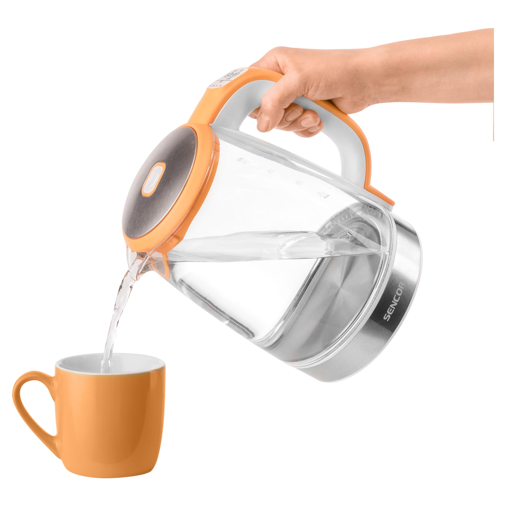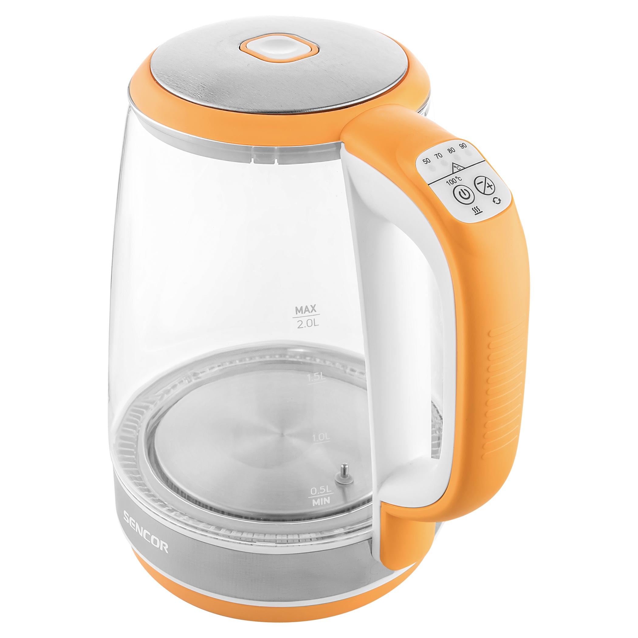 A Sencor SWK 2193OR stílusos és praktikus elektromos üveg vízforraló. A maximális kapacitása 2,0 liter és az anyagát tekintve kiváló minőségű üveg nemesacél kombináció vízszintjelző skálával. A vízforraló 2200 W teljesítményének köszönhetően gyorsan felmelegíti a vizet. A tökéletes ízélmény elérését az elektronikus hőmérséklet-szabályozó (50–100 °C) segíti. Az elkészült forró ital még 30 percen keresztül meleg marad, köszönhetően a hőmérsékleten tartó funkciónak. A hármas biztonsági rendszerrel felszerelt készülék.