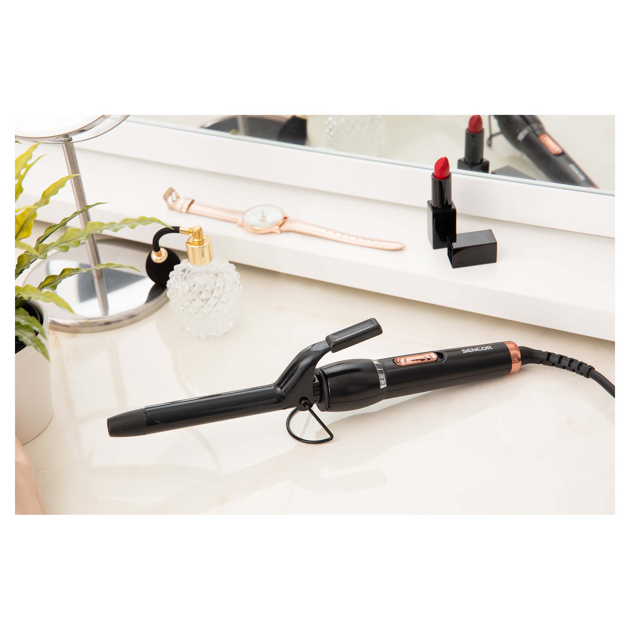 A Sencor SHS 8603BK hajsütővas 19 mm átmérővel és magas színvonalú PTC fűtő elemekkel lett felszerelve. Számos lehetőséget nyújt még a rövid hajú felhasználók számára is. Készítsen loknikat, a szabályozható teljesítménnyel könnyen személyre szabhatja hajformázóját, így biztos lehet benne, hogy haja a legnagyobb törődést kapja. Az extra sima DeepBlack felületnek és a könnyű súlynak köszönhetően tökéletes eredményt és könnyű kezelést garantál. Minden bizonnyal értékelni fogja a beépített kihajtható állványt és a rugalmas, 360°-ban elforgatható hálózati kábelt a maximális kényelem érdekében.