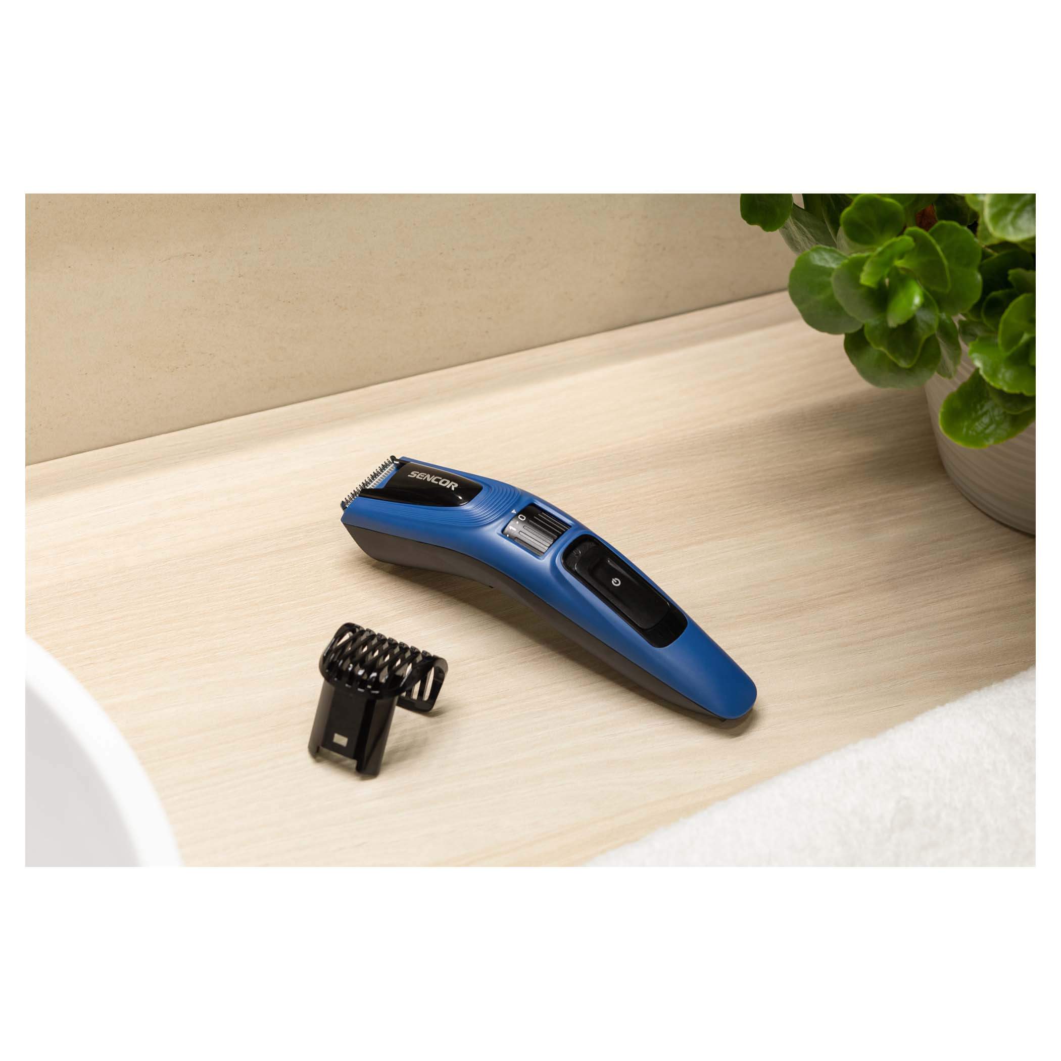 A Sencor SHP 3500BL hajnyíró készülék kiválóan alkalmas a haj vagy a szakáll formázására, igazítására. Fésűs feltét nélkül használható hajnyíráshoz, de a nyírás magasság állítható 0,5 és 10 mm közötti tartományban. A hosszabbító kiegészítőfej nélkül a nyakon lévő kis szőrszálak is eltávolíthatók. Akkumulátorról és hálózatról egyaránt használható. A töltöttség szintet a beépített LED töltésjelző mutatja. A készülék egy extra csendes magas fordulatszámú motorral, ki/be kapcsoló gombbal, és ergonómikus markolattal rendelkezik, mely utóbbi megakadályozza, hogy kicsússzon a kézből.