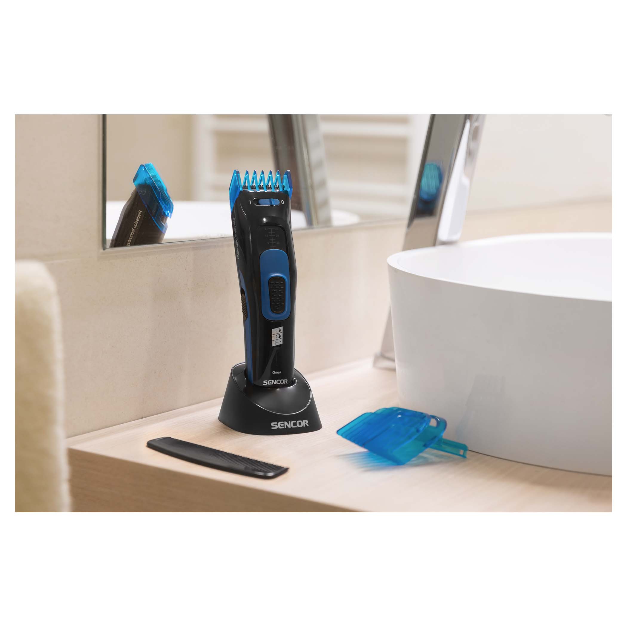 A Sencor SHP 4502BL hajnyíró készülék kiválóan alkalmas a haj vagy a szakáll formázására, igazítására. A készülékhez tartozik 2 különböző méretű trimmelő fej az egyedileg fejlesztett Lock-Up rendszerrel. Mindkét feltét segítségével 4 különböző hosszúságban tud hajat vágni. Vezeték nélkül és hálózaton keresztül is egyaránt működtethető, így akkumulátor lemerülés esetén, hálózatról tovább működtethető. Az ergonomikus kialakítású fogantyúnak köszönhetően a kézben nem csúszik meg a készülék.