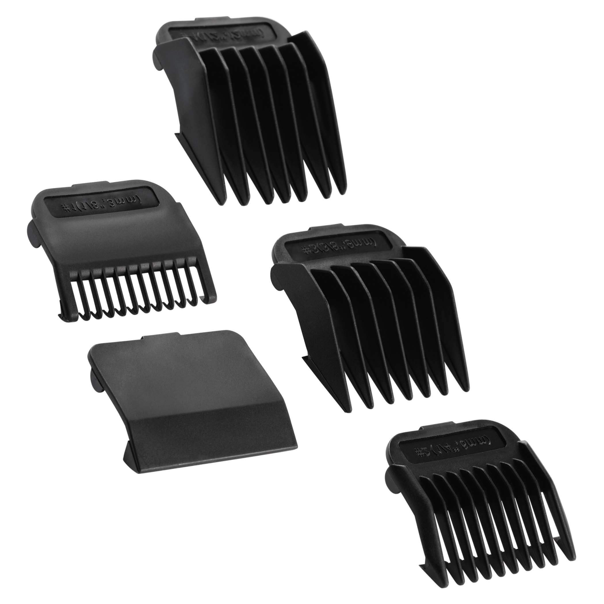 A fésűs feltét cseréje rendkívül egyszerű módon elvégezhető. Egyszerűen csúsztassa a feltétet a vágófejhez és készen is van. Az eltávolítása hasonló módon végezhető el. A csomagban4különböző mérethez tartozó feltétet talál, amik 3 / 6 / 9 /12 mm hosszúságú vágására szolgál. A fésűs feltét nélkül is van lehetőség hajvágásra, amely 0,1 – 0,3 mm közötti hosszúságot biztosít.